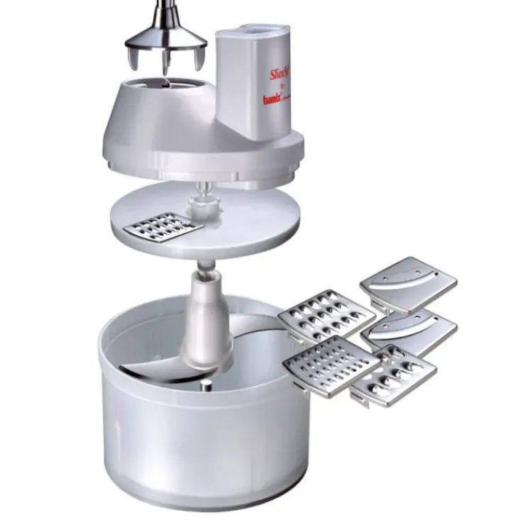 Le SliceSy est l’accessoire indispensable pour votre mixeur plongeant. Il suffit de fixer le SliceSy au Bamix pour le transformer en un véritable robot ! Capable de râper, trancher, hacher… Il vous permettra de préparer les carottes rapées, les betteraves, les gratins, les tartare… C’est le complément parfait au mixeur déjà incroyablement polyvalent.