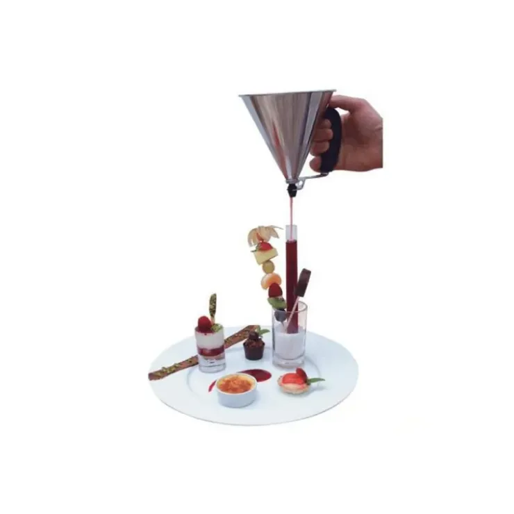 - Conseil d’utilisation : entonnoir réservé pour les préparations très liquides. Non adapté pour le chocolat tempéré