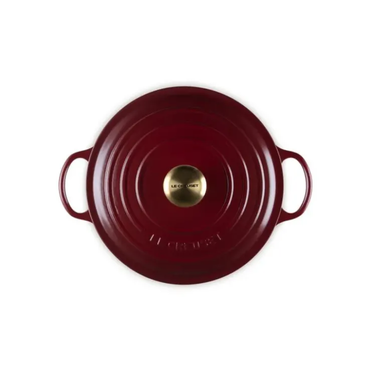 Marmite en Fonte 26 cm Garnet Bouton Doré Le Creuset Signature