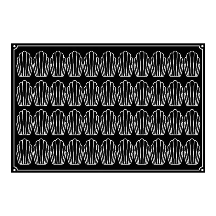 Ce moule en silicone souple Pavoflex est destiné à une utilisation professionnelle et vous assurera 44 madeleines uniformes par fournée.