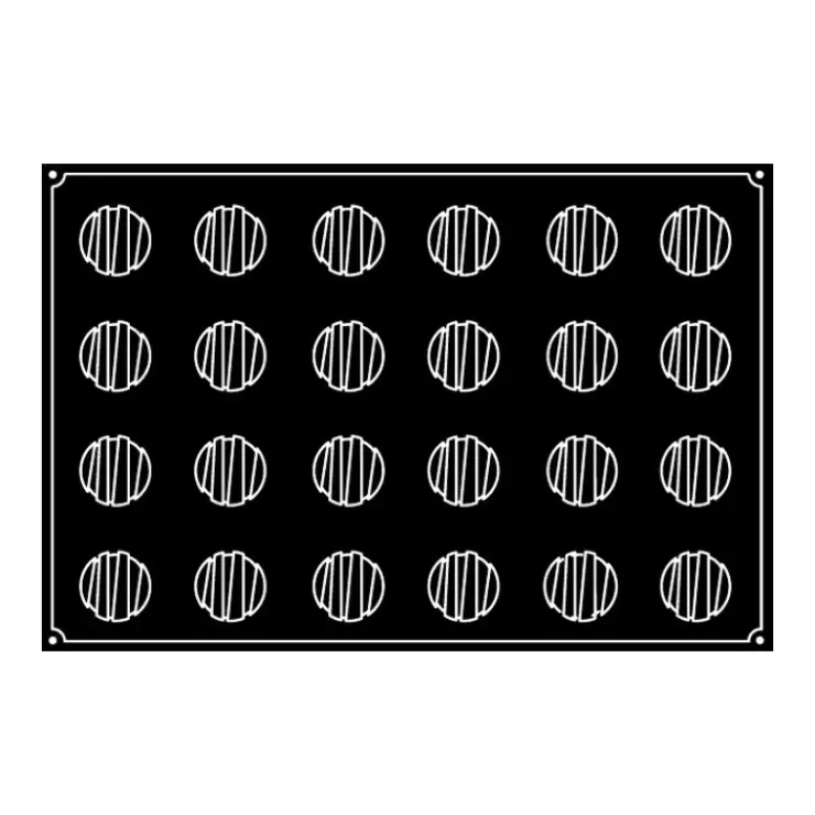 Ce moule en silicone vous permettra de réaliser 24 Ronds Rayés de 6 cm de diamètre pour une hauteur de 4,5 cm, vous pourrez remplir à votre guise chacune des empreintes de 115 ml de préparation sucrée ou salée.