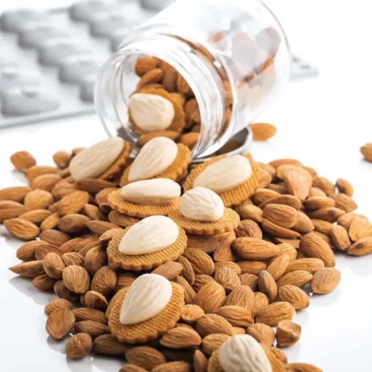 Craquante, douce, gourmande, l’amande est fruit sec utilisé dans de nombreuses recettes. Rendez honneur à cet ingrédient essentiel en confectionnant des gâteaux à son image. Le moule en silicone gourmand amande possède 30 empreintes à la forme ronde et allongée et au réalisme épatant ! Avec les bons ingrédients et un peu d’huile de coude, vous pourrez aisément confectionner des amandes en trompe-l’œil.