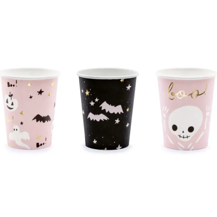 Fabriqués en papier rigide et biodégradable, ces verres halloween apporteront une touche mignonne et réconfortante au milieu des histoires d’horreur et des déguisements terrifiants. Composé de 6 gobelets Halloween avec 3 décors différents, ce set de gobelets PartyDeco émerveillera vos enfants avec ses couleurs rose pale, blanche et noir ainsi que quelques touches de doré pour le côté festif.