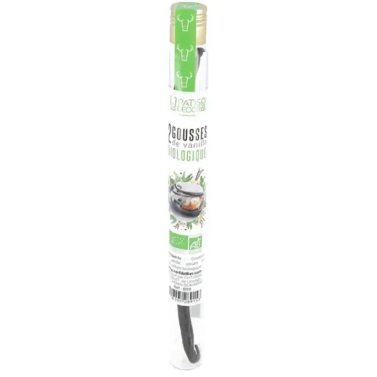 Découvrez le lot de 2 Gousses de Vanille de Nouvelle Guinée Bio (x2) Patisdécor pour colorer et parfumer tous vos desserts !