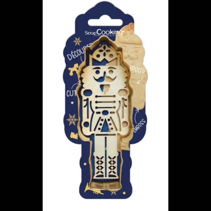 Revisitez un grand classique de l’opéra avec le kit à biscuit casse-noisette Scrapcooking. Composé d’un emporte-pièce en inox et d’un embosseur en bois, ce kit biscuit vous assure des biscuits à thème magnifiques. Pour un thème casse-noisette ou pour Noël, confectionnez des sablés reprenant l’élégante allure du prince envoûté en forme de casse-noisette.