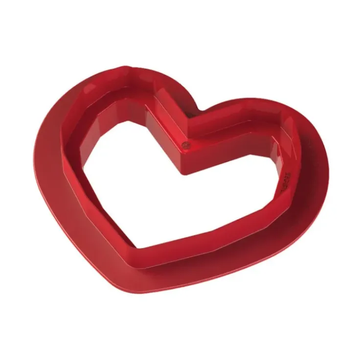 Ce moule silicone coeur est vendu avec un découpoir en plastique en forme de coeur parfaitement adapté à la forme particulière de ce moule origami en silicone qui vous permettra de réaliser des inserts ou des bases en biscuit.