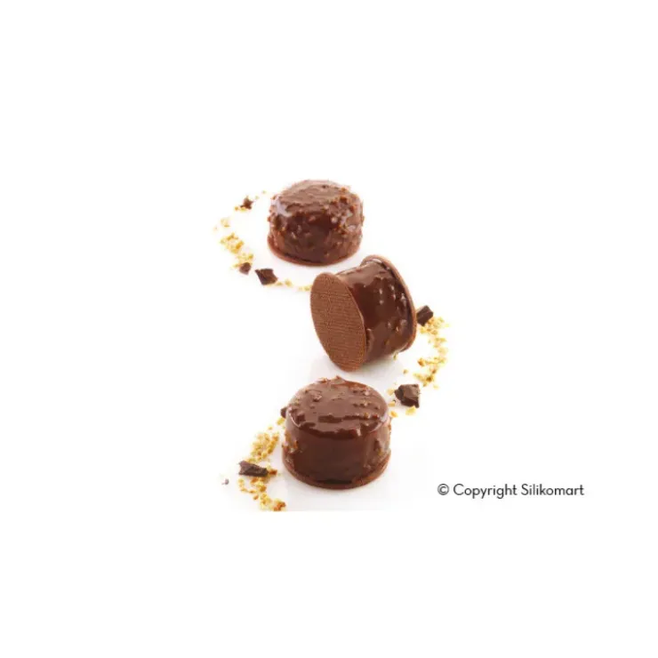 Le moule silicone 7 cylindres vous permet de créer des cylindres plats, très élégants à utiliser tels quels, à insérer entre deux coques de macarons ou entre deux disques de chocolat pour créer des bouchées sucrées qui sortent de l’ordinaire. Grâce à sa composition sous forme de barre en silicone de 7 empreintes, vous pourrez d’un seul geste lisser à l’aide d’une spatule plate la surface de vos cylindres pour un résultat parfait lors du démoulage.
