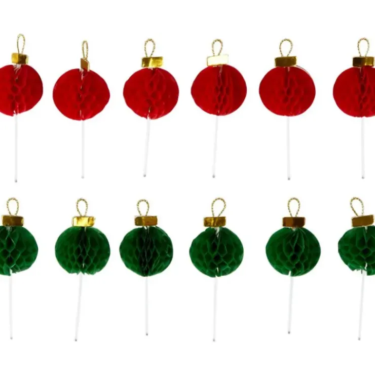 Décorations Boules de Noël Rouges et Vertes sur Piques (x12) Wilton