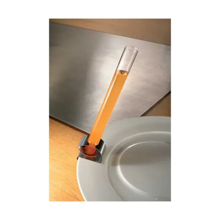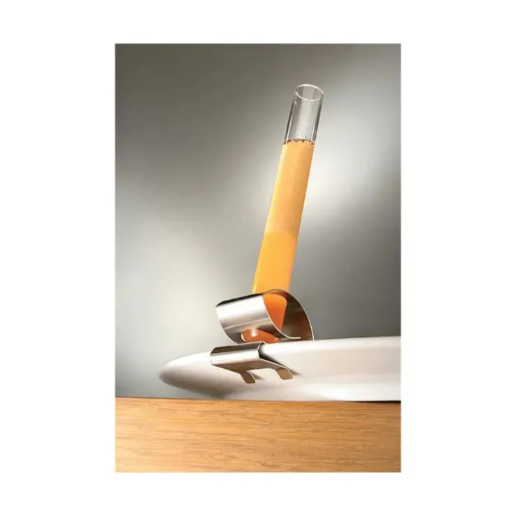 Le porte-tube à essai « Bruxelles » se clipse sur le bord d’une assiette pour assurer une présentation original de vos sauces ou préparations.