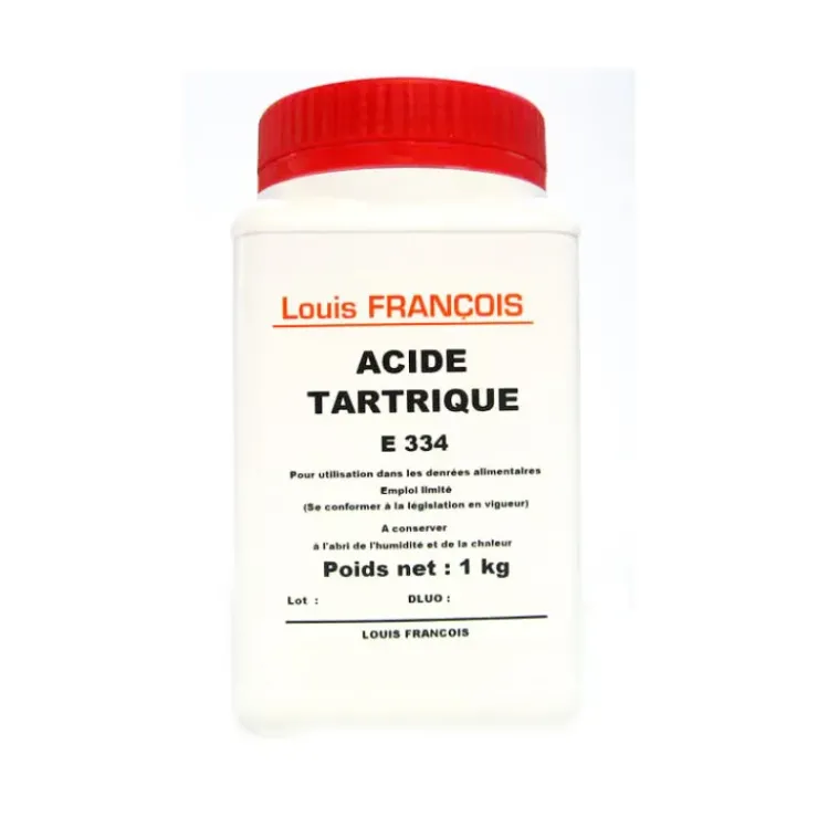 L’acide Tartrique exalte les arômes, possède un goût acidulé, acidifiant, antioxydant, stabilise l’aspect et la couleur, le parfum, la saveur et la valeur nutritive des légumes et poissons, poudre à lever.