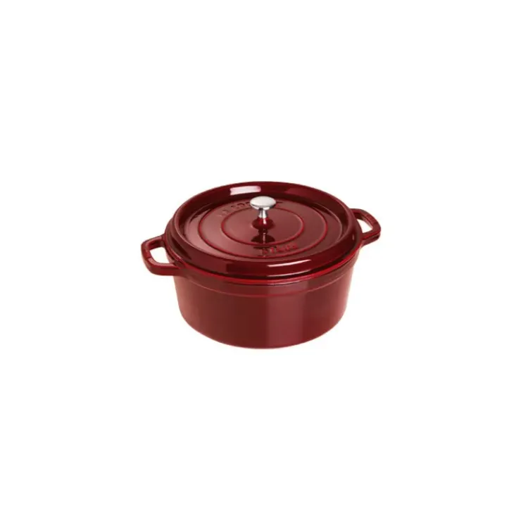 La cocotte en fonte Staub avec sa couleur grenadine donne une touche de couleur dans votre cuisine et transforme chaque repas en un repas de fête. Sa couleur d’un rouge foncé est obtenu grâce à une des émaux majoliques, de l’émail à 100% verre qui donne à votre cocotte Staub une couleur inimitable.
