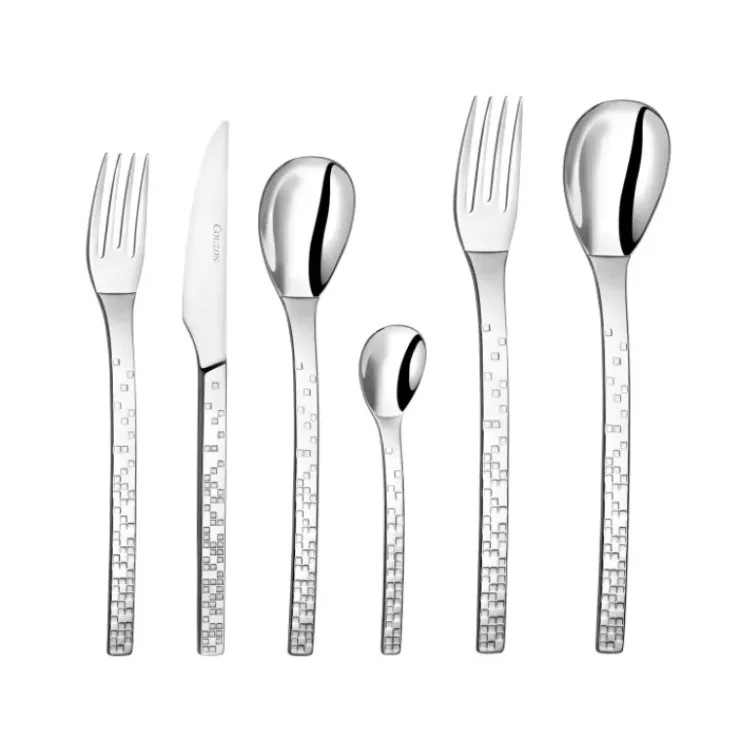 Cette Ménagère Couzon 50 Pièces de la collection Pix’elle 3D sera idéale pour tous les amoureux de Tetris, ou pour ceux désirant ajouter une note moderne à leur table.