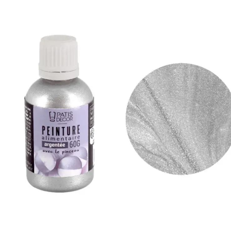 Découvrez la Peinture Alimentaire Argentée 63 g Patisdécor qui viendra illuminer vos desserts.