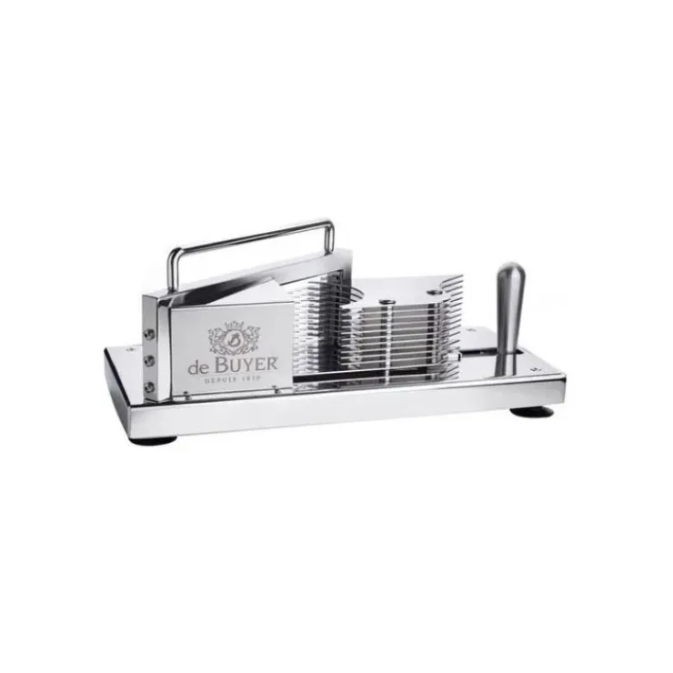 Ce tranche tomate professionnel de la marque De Buyer permet un tranchage précis en fines rondelles de toutes les tomates, mûres ou fermes, en quelques secondes et en toute sécurité. Un chariot vous permet de précipiter la tomates sur une grille composée de 10 lames qui couperont votre tomates en 10 tranches fines. La main n’est, à aucun moment, en contact avec la tomate durant coupe, car le chariot est accompagné d’une poignée pour une découpe en toute sécurité.