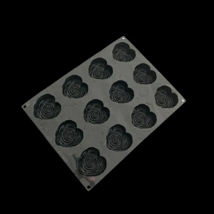 D’une dimension de 40 par 30 cm, ce moule silicone dispose de 12 empreintes permettant de réaliser simultanément 12 mini entremets identiques. Proposé dans un design original, ce moule cœur dispose de nombreux détails en 3D reflétant un pochage digne d’un vrai professionnel.