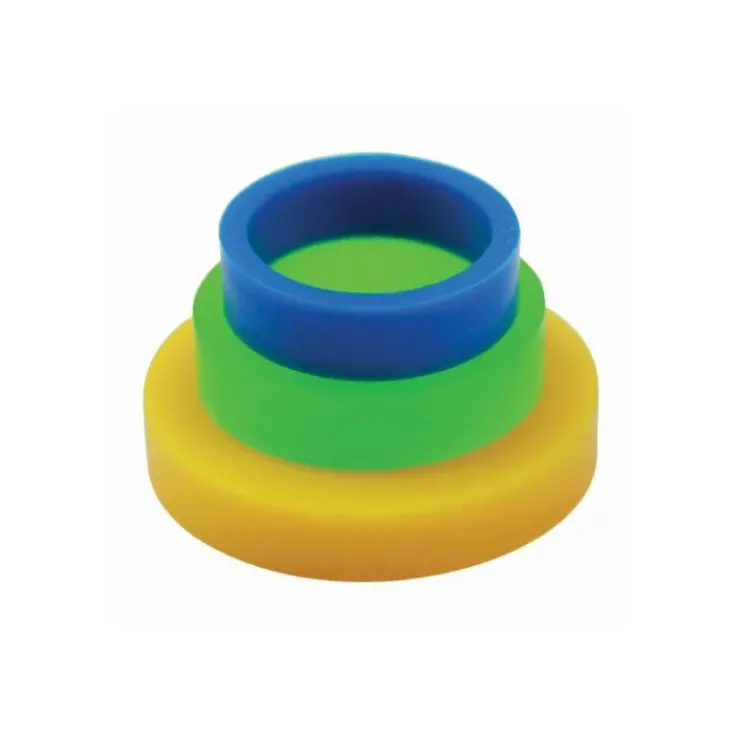 Vous cherchez la régularité lorsque vous étalez vos pâtes ? Munissez-vous des ces 3 Paires d’Anneaux Guide pour obtenir une épaisseur précise lors de l’abaisse. Les anneaux bleus vous permettront une abaisse d’ 1,55 mm, les anneaux verts une abaisse de 3,55 mm tandis que les jaunes vous permettront une épaisseur de 12,6 mm.