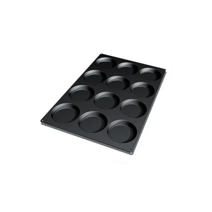 Moule Silicone 12 Fonds de Tarte Biscuit Ø12 x 2,2 cm 120ml SilikoMart Professional