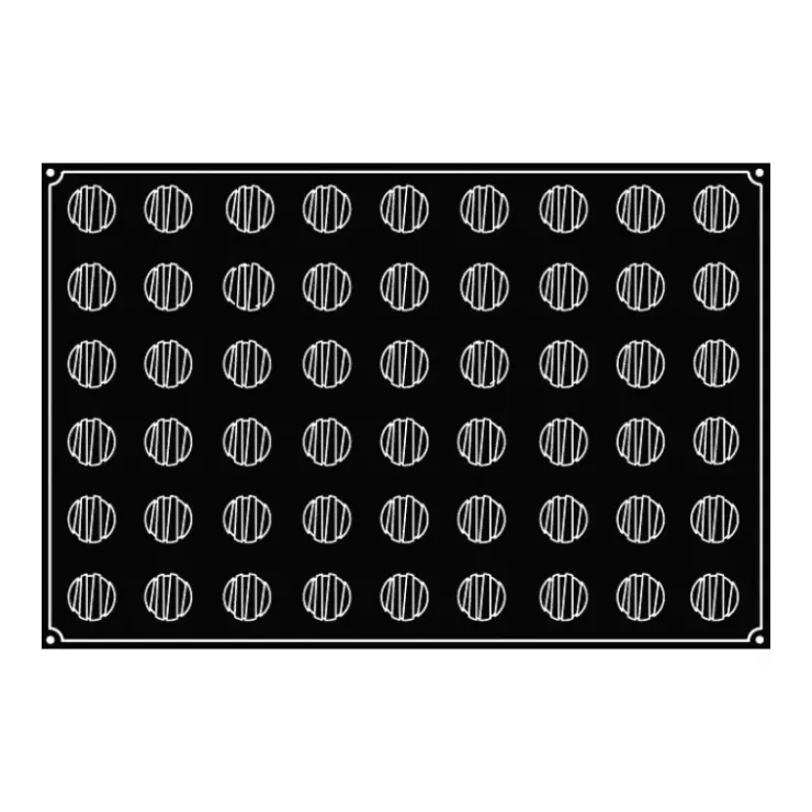 Ce moule en silicone souple résiste aux basses températures (- 40°C) mais aussi aux fortes températures (+ 300°C) vous laissant ainsi un large choix quant à l’utilisation que vous pourrez en faire. Notez que ce moule vous assurera un démoulage net et sans bavure, puisque le moule est anti-adhérent, vos 54 Mini-Ronds Rayés seront donc parfaitement identiques.