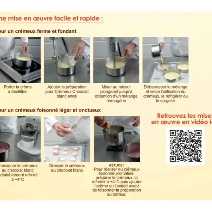 Que ce soit pour un crémeux ferme et fondant ou plutôt un crémeux foisonné léger et onctueux, le crémeux chocolat blanc 1kg Ancel sera la solution rapide, pratique et 100% gourmande !