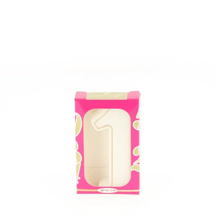 Bougie anniversaire chiffre 1 blanche avec filet doré