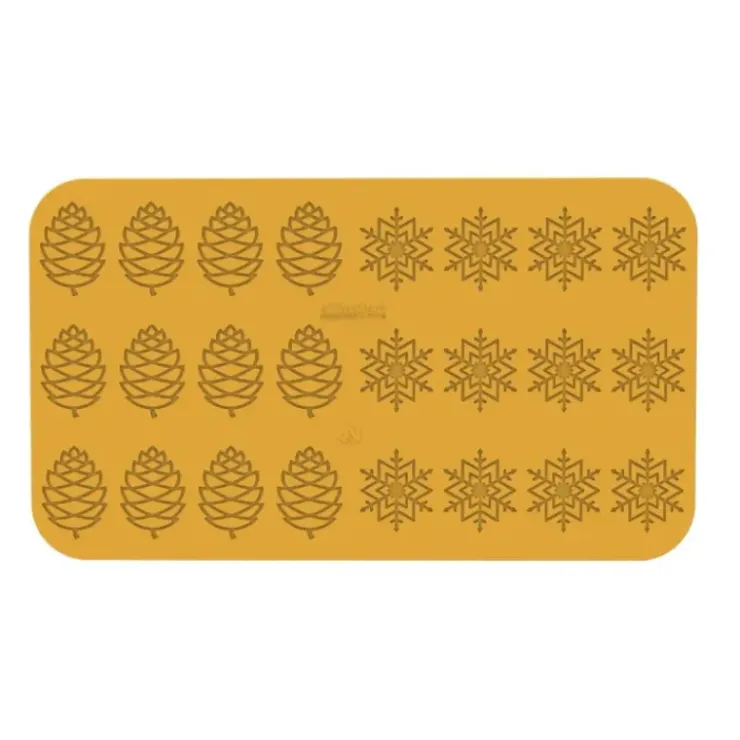 Avec ses deux modèles différents, chaque détail de ce moule décors, est sublimé grâce à la qualité professionnelle du silicone platinum. Les pommes de pin (6,7 x 4,7 cm) et les flocons (Ø 6 cm) sont parfaits pour donner une touche hivernale à vos gâteaux, entremets ou chocolats. Que ce soit pour une décoration en isomalt, pâte à sucre ou chocolat, ce moule est idéal pour des décorations gâteaux délicates et féériques.