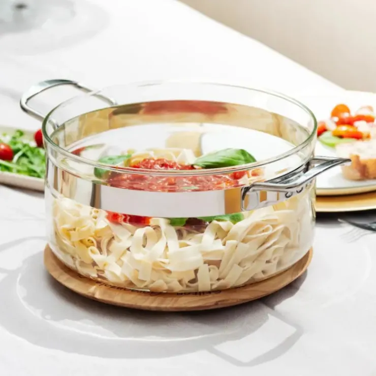 Le verre borosilicate transparent vous permet de suivre la préparation de vos plats en temps réel directement dans votre faitout, tout en conservant la chaleur et l’humidité pour une cuisson optimale. Avec une capacité de 2,5 L, ce faitout en verre est parfait pour cuisiner pour la famille ou recevoir des invités. Ses anses en inox robustes et son bec verseur facilitent le service, tandis que le couvercle en verre inclus permet de conserver les saveurs et la chaleur.