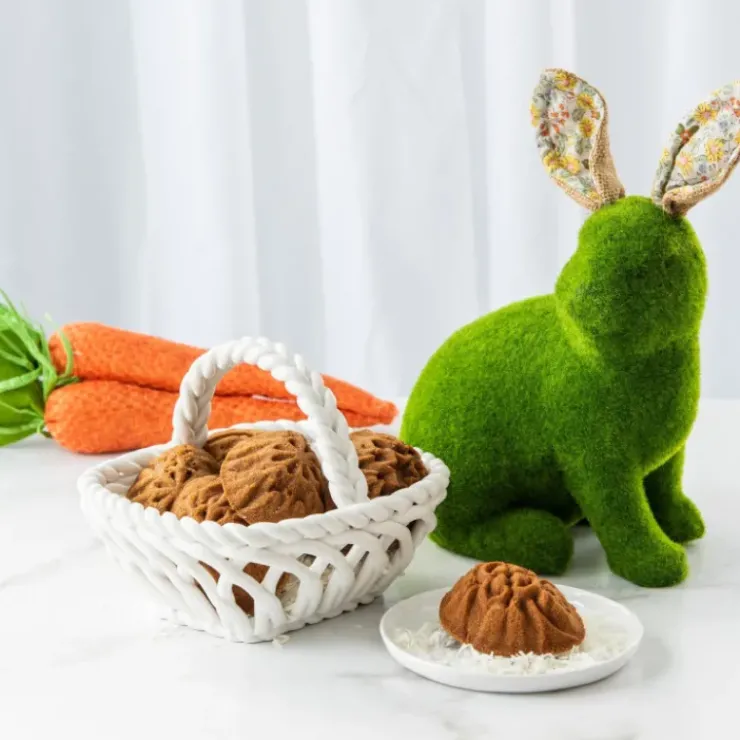 Nordic Ware vous propose son moule à gâteaux œufs de Pâques afin de vous aider à réaliser des œuvres d’art entièrement comestibles. Pour cela rien de plus simple : préparez votre appareil à gâteau (variez les saveurs si vous le souhaitez), puis versez-le dans les six empreintes du moule, laissez ensuite poser quelques minutes pour que la pâte épouse chaque détail. Ne vous reste ensuite qu’à enfourner et laisser faire la magie du moule Nordic Ware. La composition en fonte d’aluminium et le revêtement anti adhésif assure la cuisson uniforme et la coloration de vos créations.
