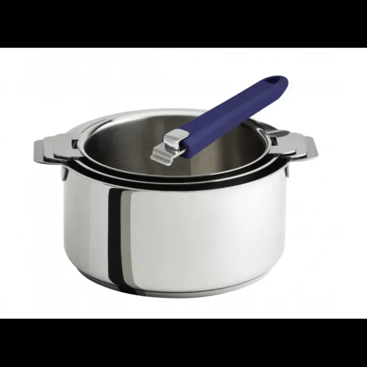 Lot de 3 Casseroles inox avec Poignée Bleue Mutine Amovible Cristel