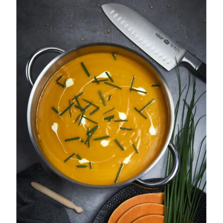 Idéale pour porter à ébullition des grandes quantités de liquide, réaliser un potage ou un plat unique comme le pot au feu, la marmite est un ustensile de cuisson polyvalent. Grâce à ses bords hauts et son volume de 36 litres, la Marmite Inox Ø36cm Prim’Appety De Buyer vous permet de cuire de grands volumes d’aliments en toute simplicité. Pleine, vous pourrez facilement déplacer et vider votre marmite cuisine à l’aide de ses deux anses inox soudées et son bord verseur. Élaborée en collaboration avec de grands chefs cuisiniers, la marmite De Buyer est de qualité professionnelle. Son fond sandwich permet une diffusion homogène de la chaleur sur le socle de la marmite inox et la rend compatible tous feux, dont induction. De quoi satisfaire professionnels et particuliers. La marmite professionnelle passe également au lave-vaisselle. Nul doute qu’elle trouvera rapidement sa place au sein de votre batterie de cuisine.