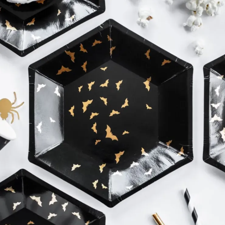 Leur design aussi effrayant qu’élégant raviront petits et grands ! L’association de couleurs entre les chauves-souris aux détails dorés et le fond noir obscur et profond est parfaite pour apporter un côté chic à votre soirée ! Retrouvez 6 assiettes en carton de 20 cm de qualité supérieure pour une décoration de table Halloween réussie.
