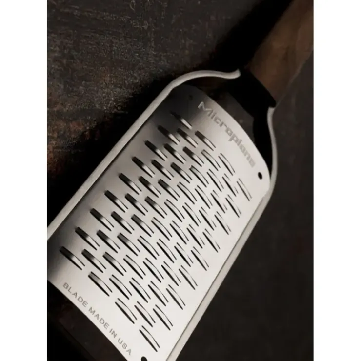 La véritable singularité de cette râpe Microplane réside dans sa lame innovante. Conçue à double tranchant, elle permet de râper dans les deux sens, offrant ainsi une rapidité et une praticité incomparables. Il suffit d’un simple mouvement de va-et-vient pour obtenir des lanières fines et fondantes.