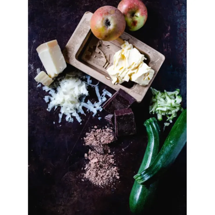 Cette râpe Double Tranchant est une râpe polyvalente, idéale pour râper des fromages à pâte dure, des pommes, des carottes, de la courgette, du chocolat et du beurre.