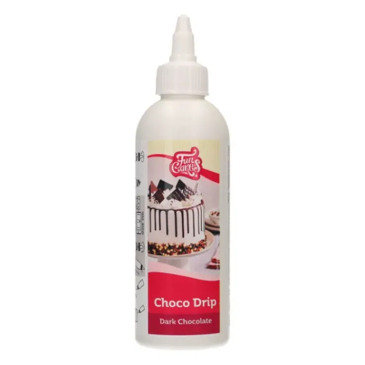 Laissez-vous tenter par le Glaçage Choco Drip Marron 180 g Funcakes, l’allié parfait pour vos créations gourmandes.