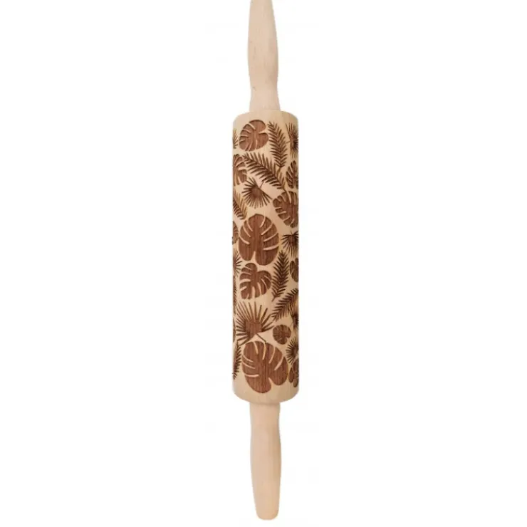 Rouleau Pâtisserie Motif Feuilles Tropicales 39 cm Bois Scrapcooking