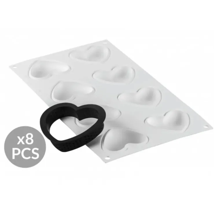 Kit Moule Silicone 8 Tartelettes Cœur 8 x 7 cm Silikomart Professional