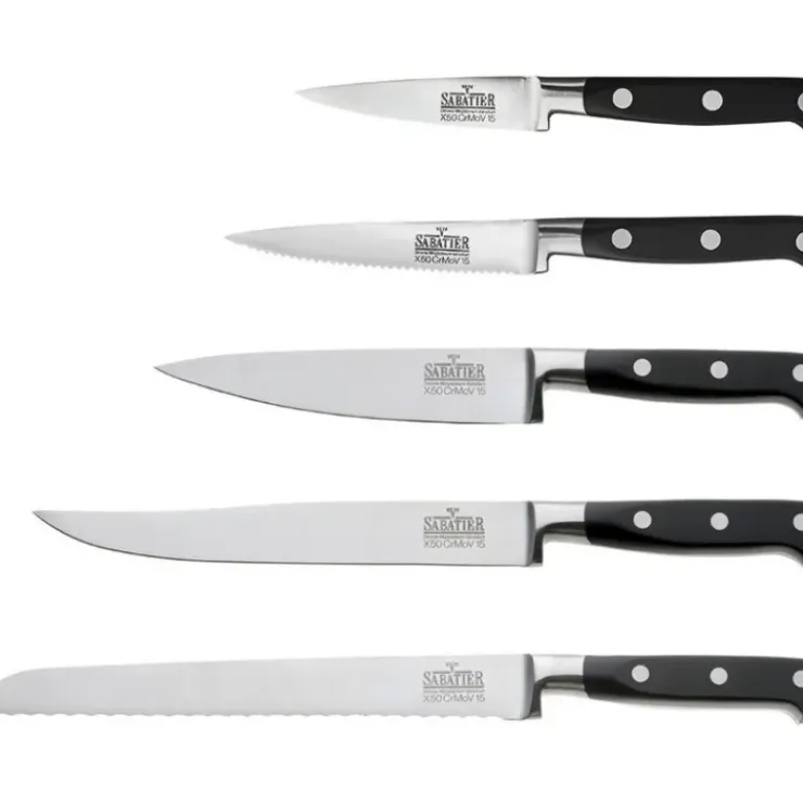 - Manche des couteaux en ABS noir, fixés par 3 rivets