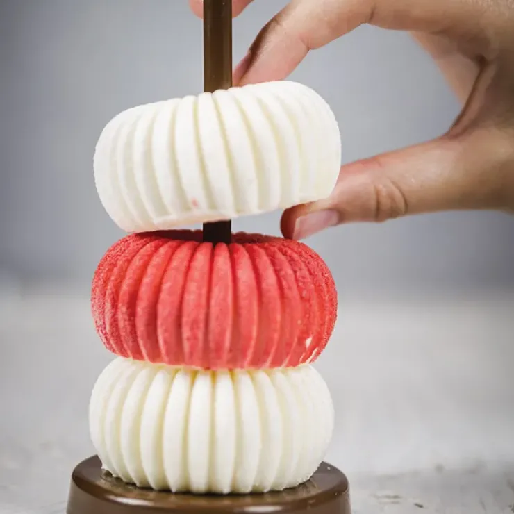 Le silicone est un matériau qui se révèle très pratique en pâtisserie car il allie formes originales et démoulage facile. Ainsi, votre dessert est intact et présente tous les détails du moule silicone Mini Raggio Silikomart 3D Design. Il n’attend plus que d’être nappé de chocolat ou de glaçage miroir !