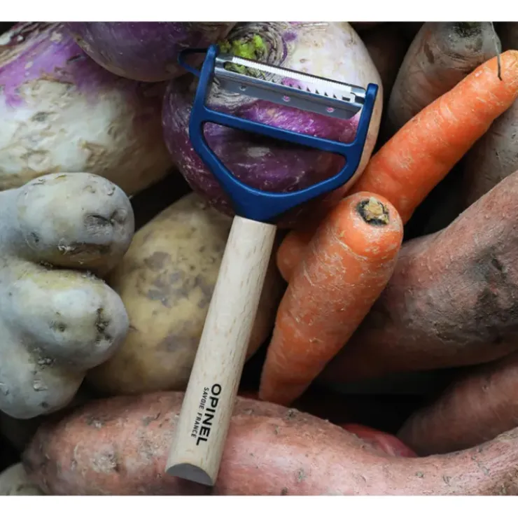 Ustensile de cuisine indispensable, l’épluche légumes accompagne tous les cuistots au quotidien. Pour les ingrédients à peaux fines et épaisses, faites confiance à l’efficacité de l’éplucheur T-duo Opinel.