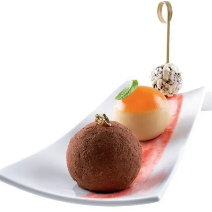 Réalisez de jolis gâteaux 3D design et original pour vos invités avec le Moule 5 Sphères Silicone Silikomart. Composé de 2 parties A et B pour former vos sphères, et d’un plateau support, ce moule silicone vous permet de créer des pâtisseries et autres desserts à l’assiette avec des sphères parfaitement dessinées et une présentation élégante et raffinée. Préparations chaudes ou froides, sucrées ou salées, ce moule s’adapte à toutes vos envies culinaires et résiste au four comme au congélateur. Le démoulage se fait facilement, tout comme le lavage, grâce aux propriétés anti-adhérentes du silicone.