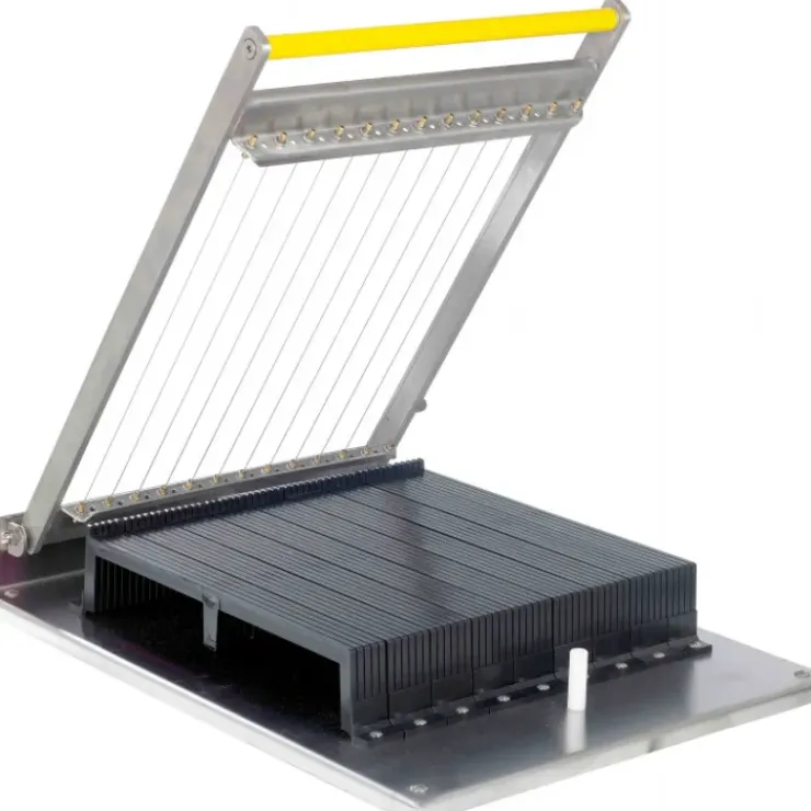 La guitare Kali vous permettra de réaliser des découpes rapide et régulières de chocolats, bonbons, ganaches, pâtes d’amandes, pâtes de fruits, canapés carré, losange, rectangle…