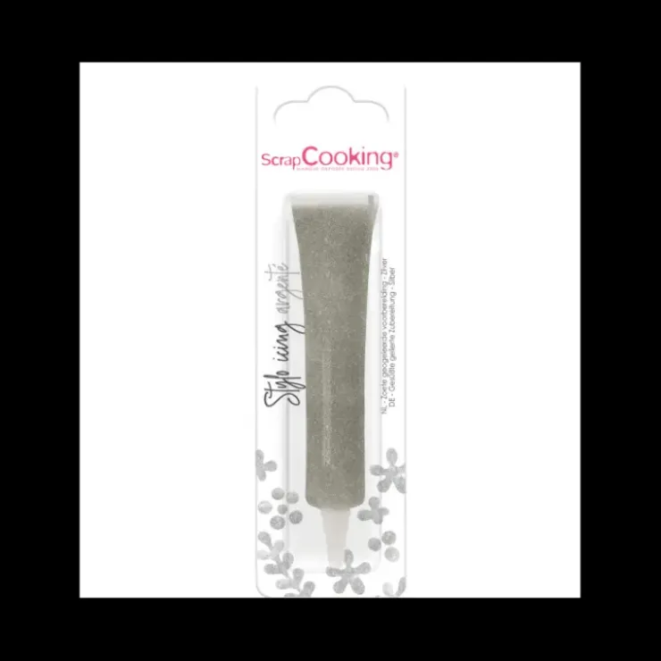 Découvrez le Stylo Alimentaire Icing Argenté 26 g Scrapcooking, qui vous permettra de décorer vos gâteaux et biscuits avec un effet métalisé !