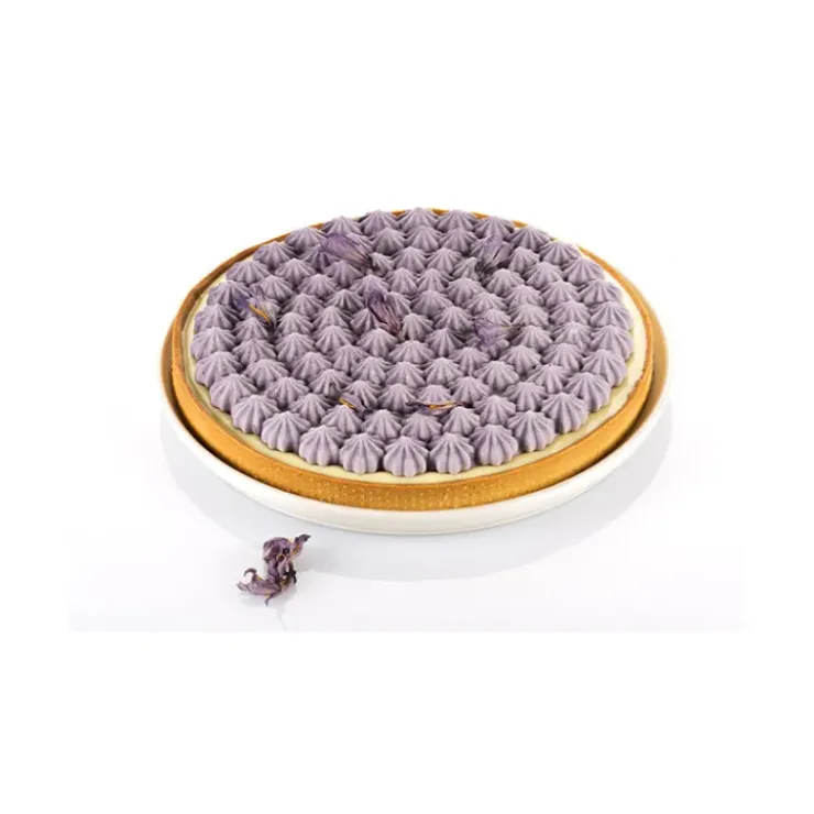 - Contient 1 cercle à tarte perforé + 1 moule en silicone pour le décor
